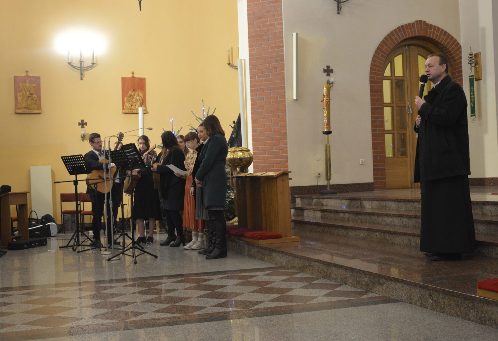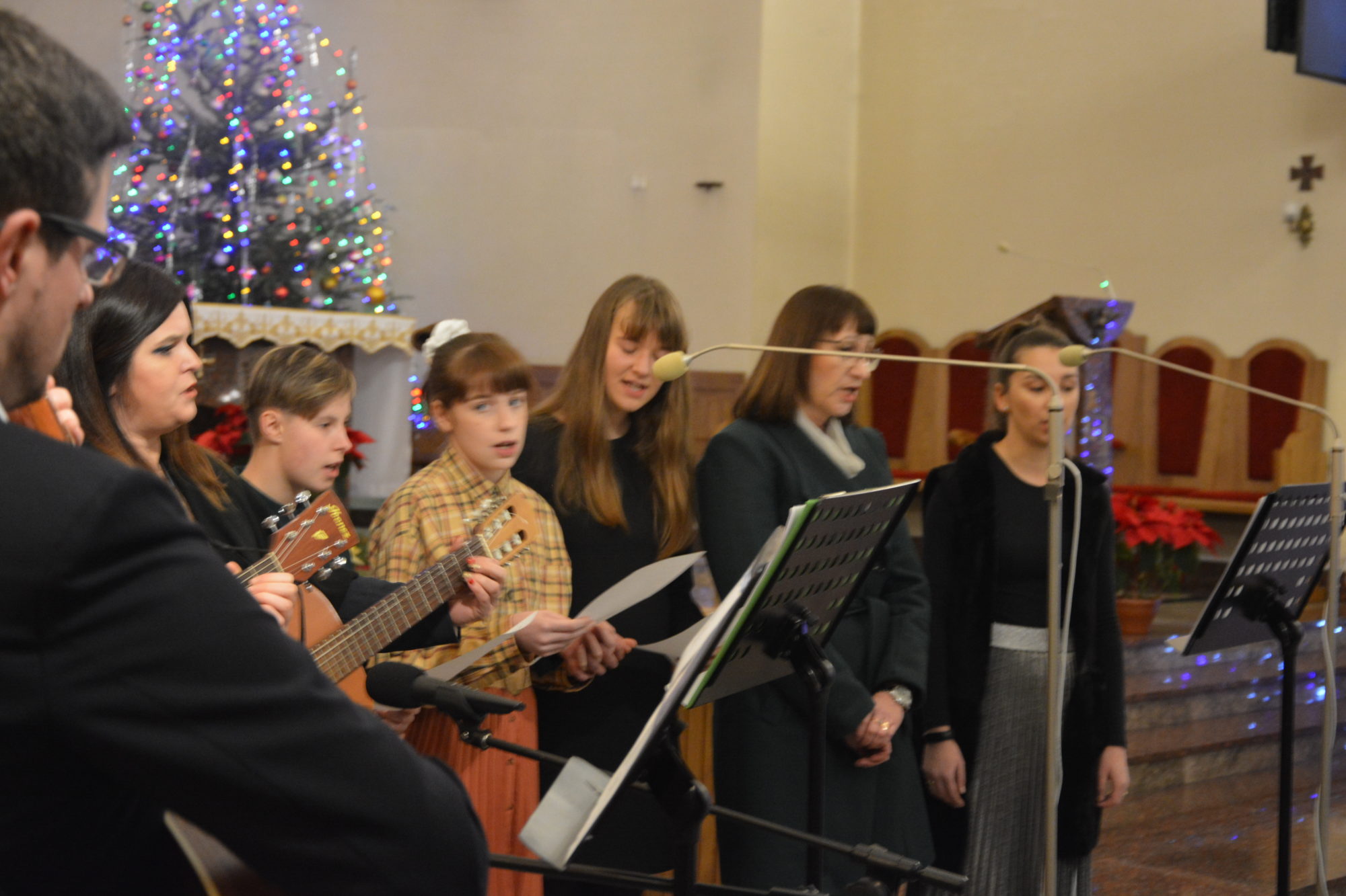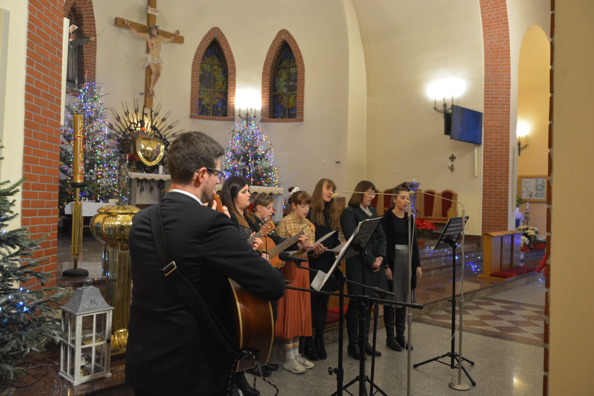 Również mieliśmy przyjemność wysłuchać zespołu parafialnego, który w piękny sposób wykonał kolędy takie, jak: Adeste Fideles, Święta Panienka, Nad Betlejem oraz w wersji instrumentalnej Gdy śliczna Panna.