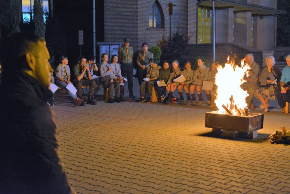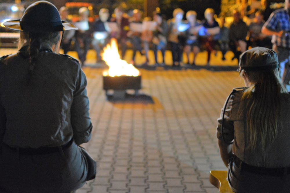 Druga część Marszu miała miejsce przed kościołem pw. św. Siostry Faustyny w Parafii NSPJ i NSNMP. Na placu przed naszym kościołem ok. 21.40 zapalono symboliczny ogień pamięci, odczytano okolicznościowy Apel i odśpiewano kilka pieśni żołnierskich, partyzanckich i patriotycznych.